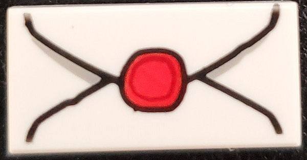 Tile 1 x 2 with Groove with Envelope with Red Wax Seal and Gray Highlights Pattern