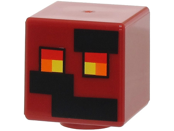 PARTS | Minifigure, Head, Modified Cube with Pixelated Black Rectangles and Red, Orange, and Yellow Eyes Pattern (Minecraft Magma Cube) [19729pb020]