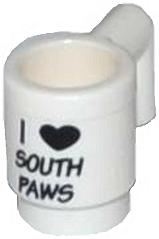 Minifigure, Utensil Cup with Black 'I' Heart 'SOUTH PAWS' Pattern